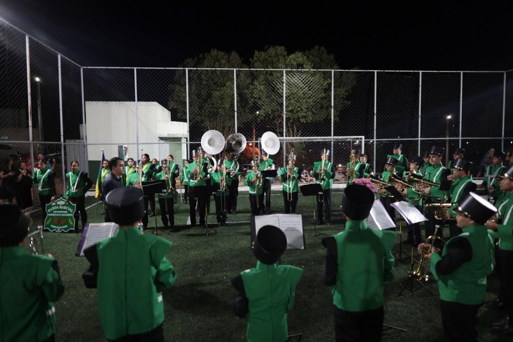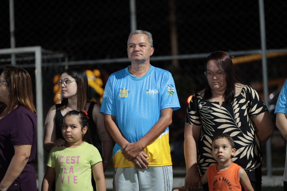 A cerimônia contou com a emocionante apresentação da Banda Marcial do CEPI Professor Mariano do Carmo do Rio Verde, que executou o Hino Nacional com maestria. O evento reuniu autoridades, equipes e parceiros para uma homenagem póstuma ao ex-Secretário de Esporte e Cultura, Gilson Lemos.