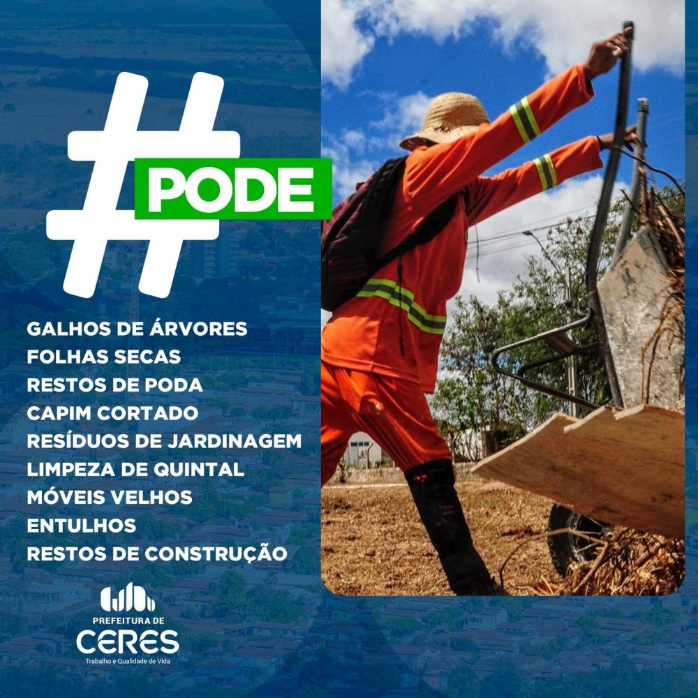 Estão sendo recolhidos: galhos, restos de poda, capim cortado, entulhos, móveis velhos e resíduos de jardinagem.